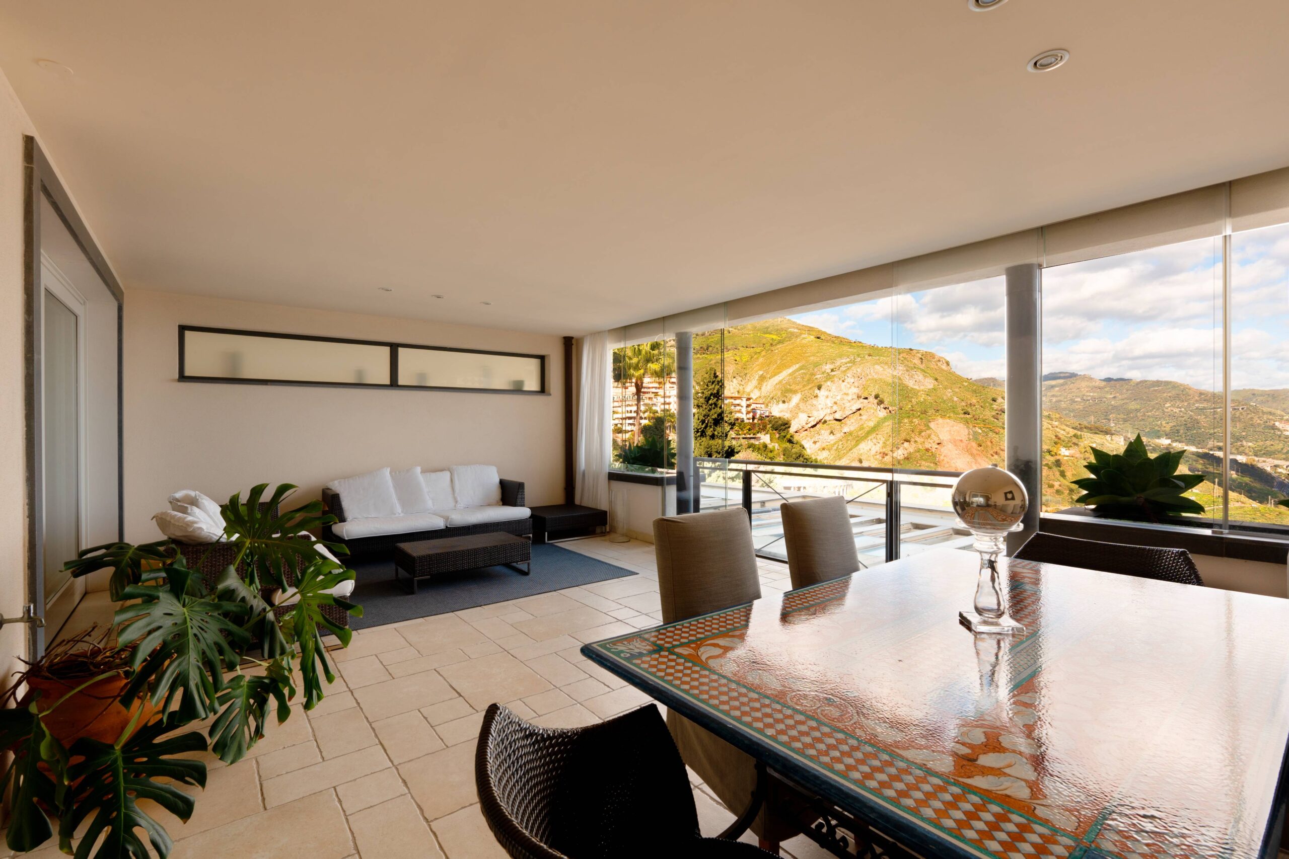 Questo elegante appartamento si trova a Taormina, all’interno del tranquillo residence San Giorgio, immerso nel verde e a pochi minuti a piedi dal centro storico. La casa offre ambienti ampi e luminosi con due camere da letto, soggiorno, cucina attrezzata e bagno privato. Gli ospiti possono inoltre usufruire della piscina panoramica del residence e del parcheggio interno. Grazie alla posizione strategica è possibile raggiungere in pochi minuti il centro di Taormina, il Teatro Greco e la funivia che collega alle splendide spiagge di Isola Bella. Ideale per chi desidera vivere una vacanza rilassante tra mare, natura e cultura siciliana.