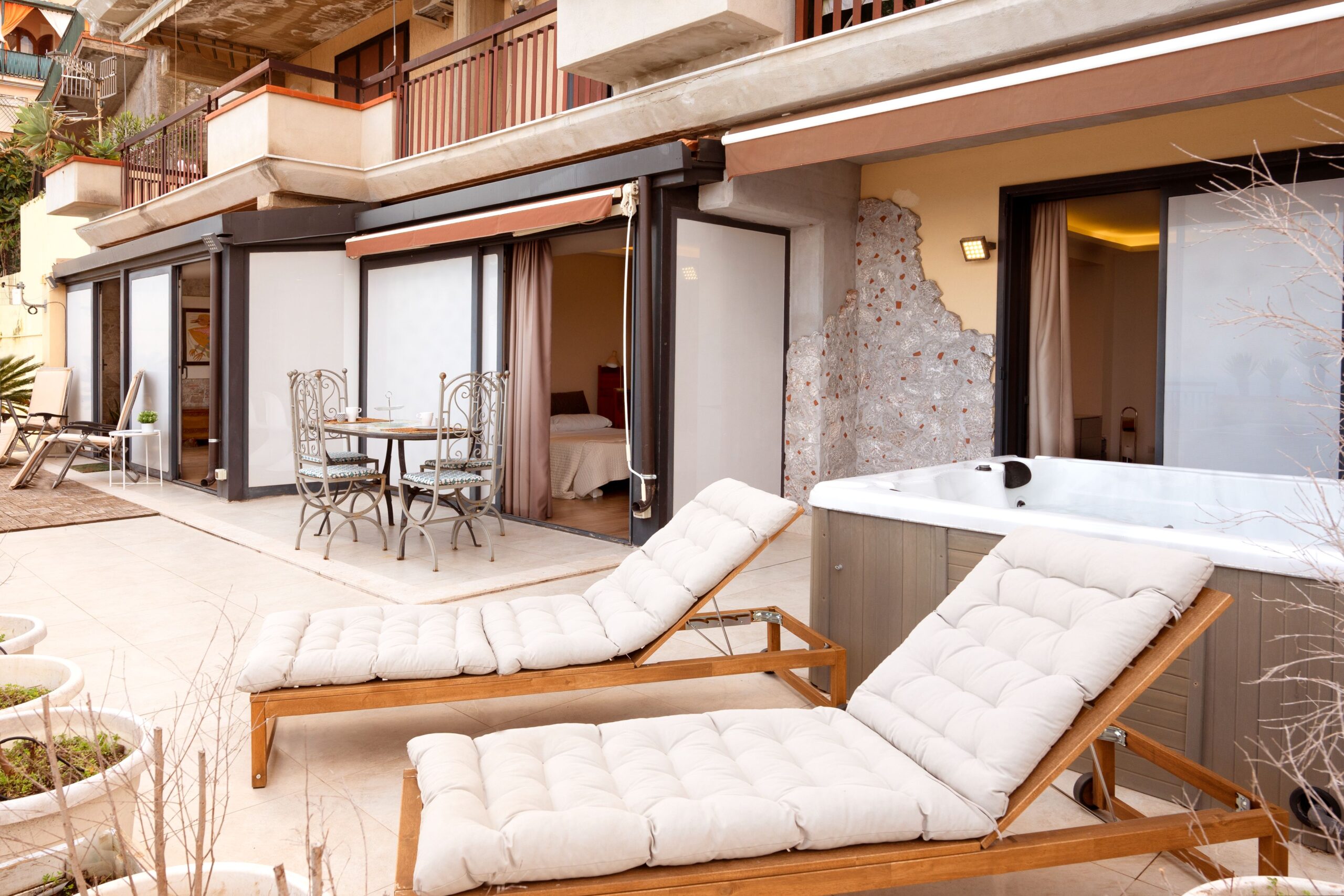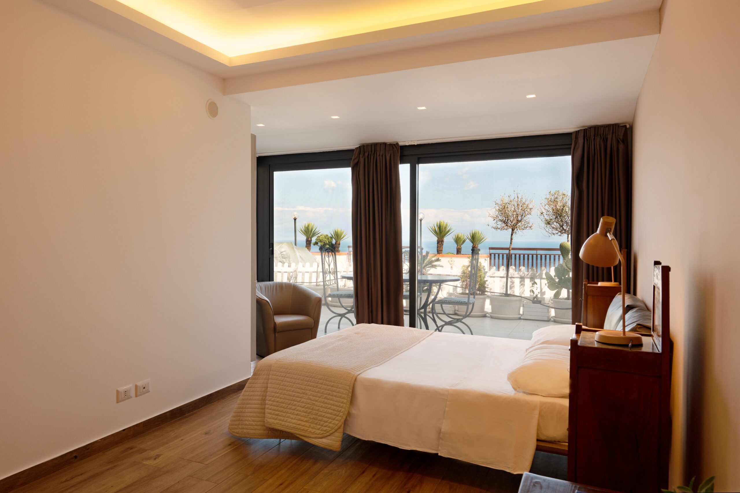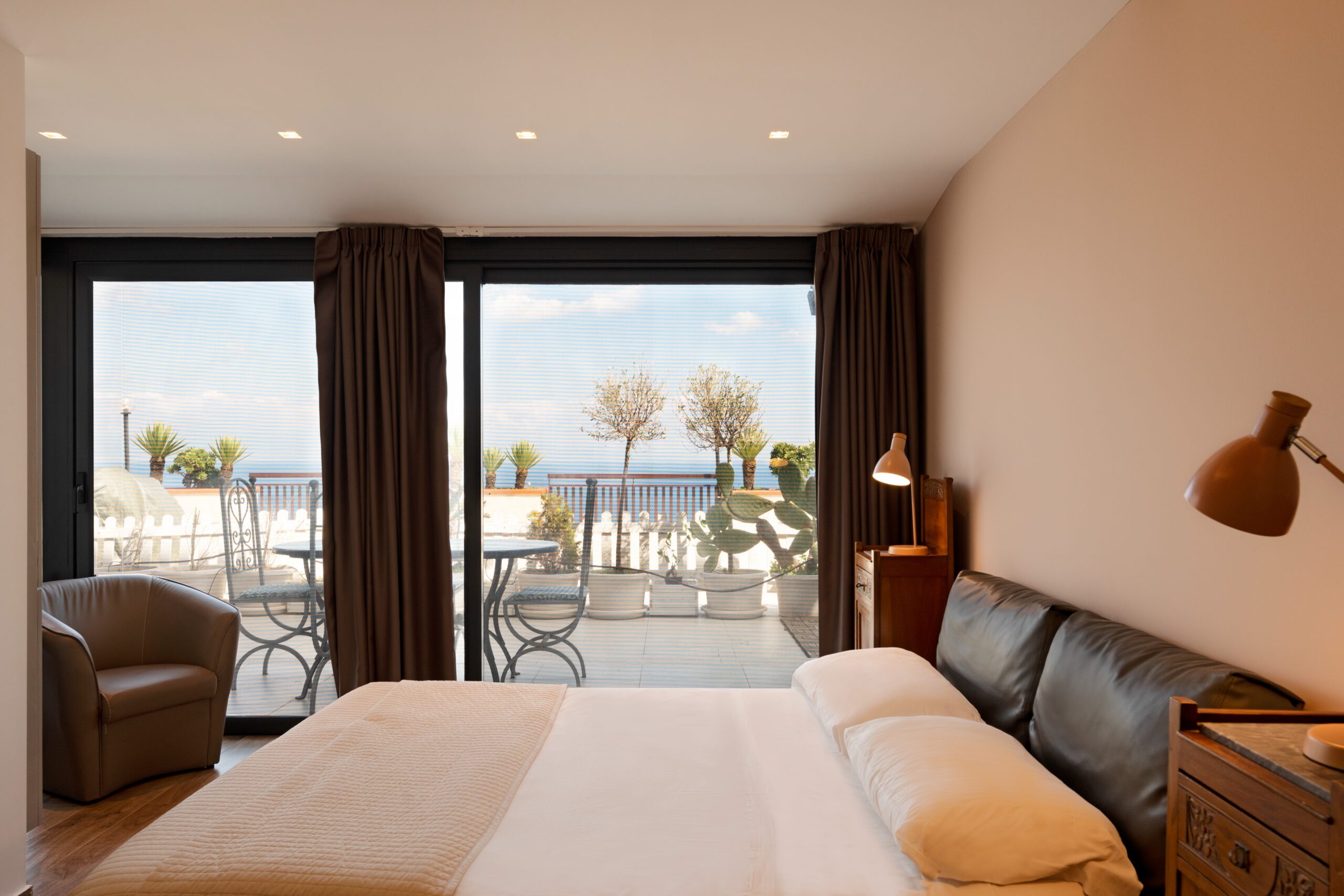 Maison de Charme Taormina è un’elegante struttura situata in posizione panoramica a Taormina, a pochi passi dal centro storico e dalle principali attrazioni come il Teatro Greco e Corso Umberto. La struttura si distingue per il suo stile raffinato e per gli ambienti curati nei dettagli, con camere luminose dotate di aria condizionata, Wi-Fi gratuito e comfort moderni. Alcune sistemazioni offrono balcone o terrazza con vista sul mare o sulla città, creando un’atmosfera intima e rilassante. Grazie alla posizione strategica vicino alla funivia e alle spiagge di Isola Bella, rappresenta la scelta ideale per chi desidera vivere Taormina tra eleganza, panorama e autenticità siciliana.