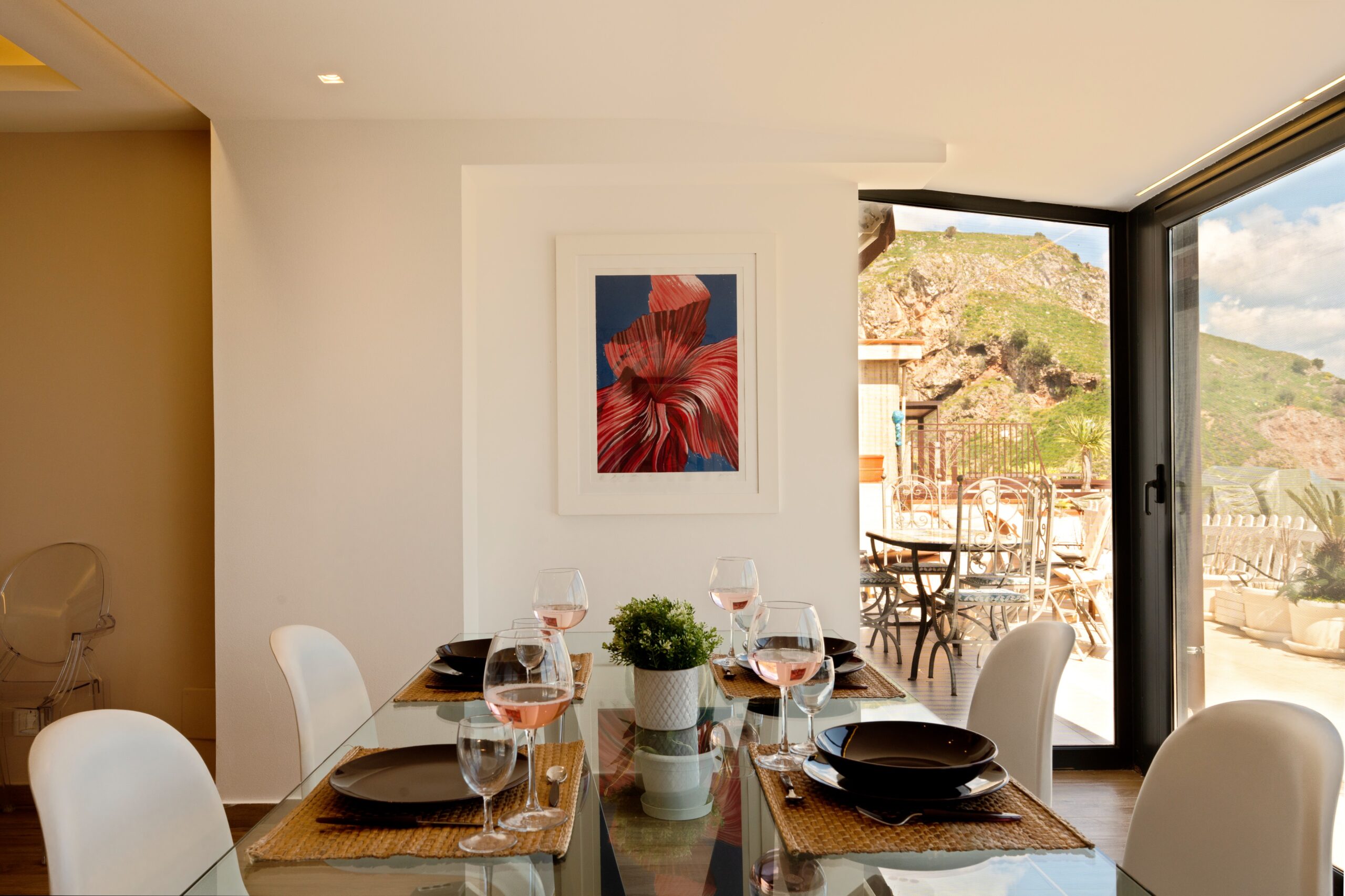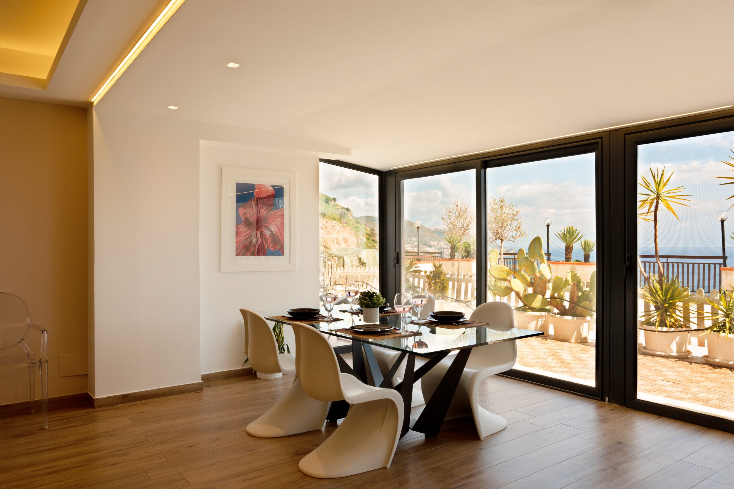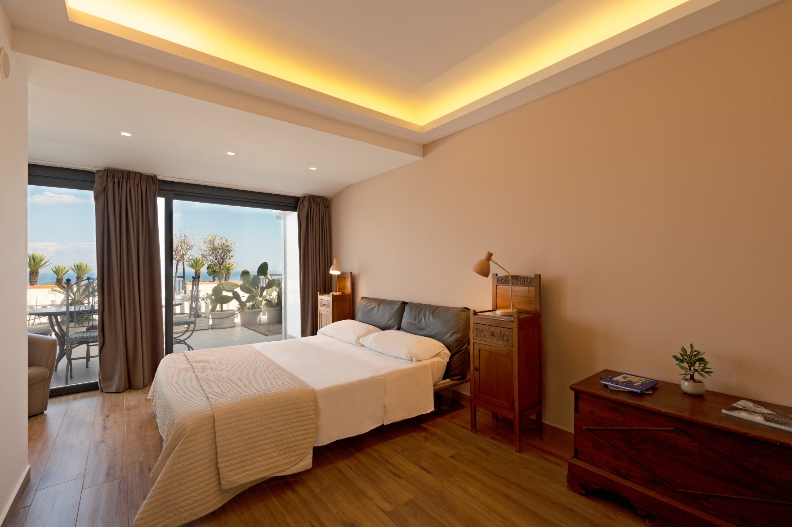 Maison de Charme Taormina è un’elegante struttura situata in posizione panoramica a Taormina, a pochi passi dal centro storico e dalle principali attrazioni come il Teatro Greco e Corso Umberto. La struttura si distingue per il suo stile raffinato e per gli ambienti curati nei dettagli, con camere luminose dotate di aria condizionata, Wi-Fi gratuito e comfort moderni. Alcune sistemazioni offrono balcone o terrazza con vista sul mare o sulla città, creando un’atmosfera intima e rilassante. Grazie alla posizione strategica vicino alla funivia e alle spiagge di Isola Bella, rappresenta la scelta ideale per chi desidera vivere Taormina tra eleganza, panorama e autenticità siciliana.